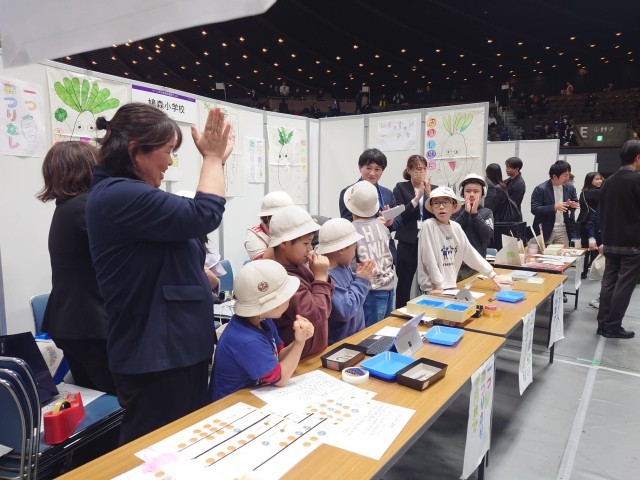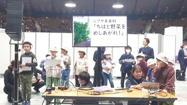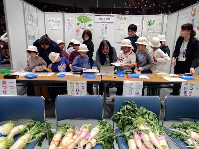 昨日、国立代々木競技場第二体育館にて行われた「探究フェス」にて、ちはと学級の子どもたちが、ちはと産の大根の販売と、ちはと野菜の魅力について発表を行ってきました。