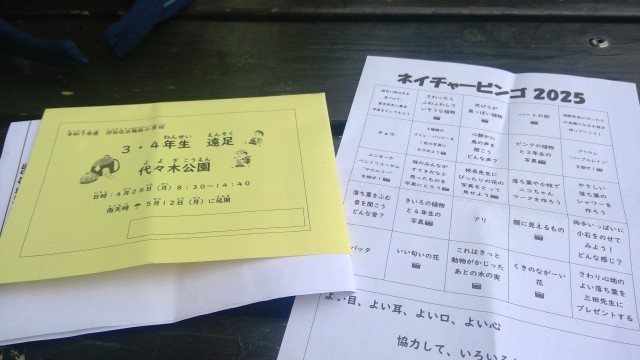 集合写真を撮った後、ネイチャービンゴをしています。
