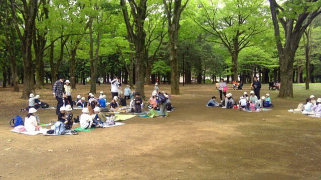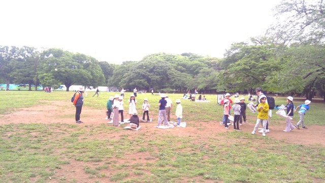 広いくさっぱらで、グループごとに盛り上がって、汗をかきながら、遊んでいました。