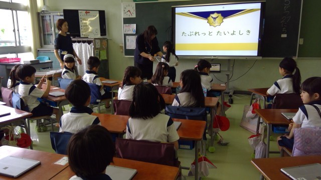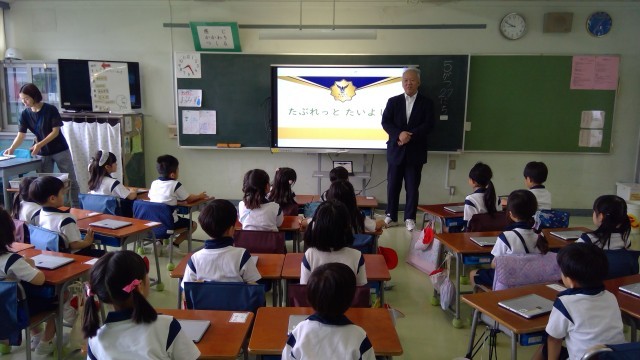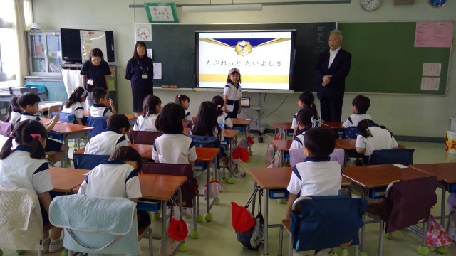 今日は、タブレット貸与式を一年生の教室で行いました。