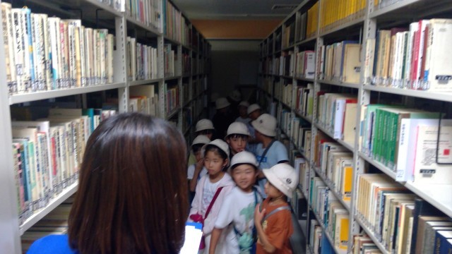 1階から下に降りて、閉架している図書の倉庫を見るグループ。