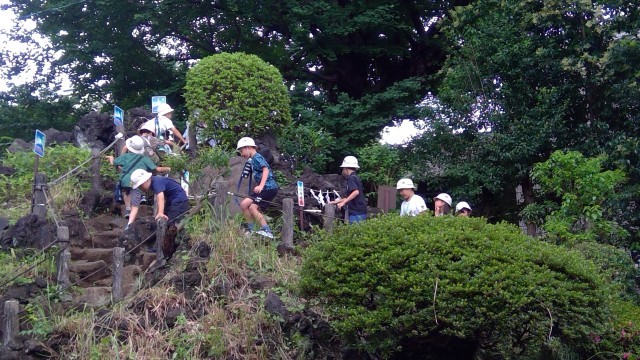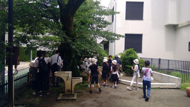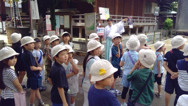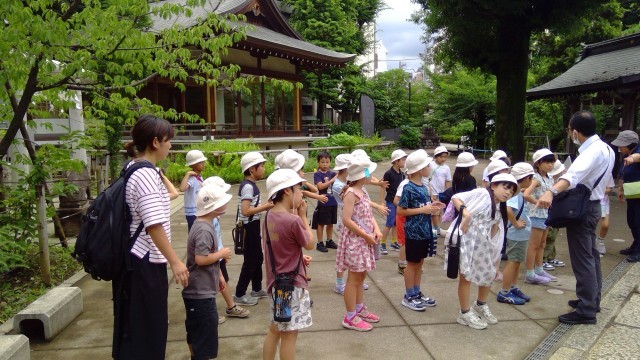 途中は、国立能楽堂・子どもたちが見つけた自然を見ながら、鳩森神社に到着。