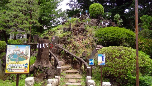 最後に富士塚にのぼり、頭がへこんだ狛犬をなでてきました。