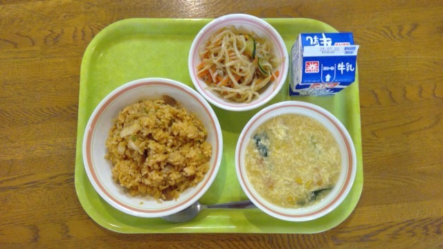 給食だより 6月26日(木) 公開日 2025/06/26 更新日 2025/06/26 今日の給食 今日の献立・キムチチャーハン・牛乳・切り干し大根のナムル・中華コーンスープ★今日は、「キムチの体内の働き」について、給食メモでクラスにお知らせをしました。