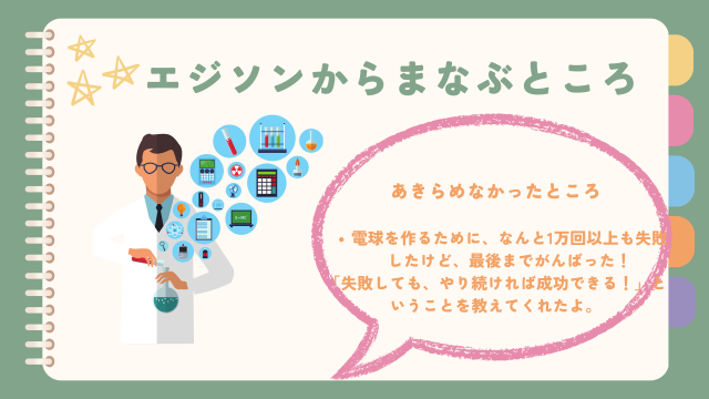 3 たくさん失敗してもあきらめなかった。(10000回挑戦したこともあったそうです)