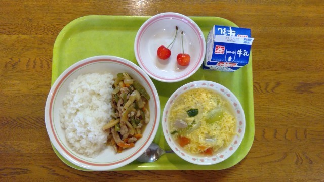 給食だより 6月30日(月) 公開日 2025/07/01 更新日 2025/07/01 今日の給食 今日の献立・ごはん・牛乳・青椒肉絲・トマトと卵のスープ・さくらんぼ★今日は、「さくらんぼの産地や品種」について、食育メモでクラスにお知らせをしました。