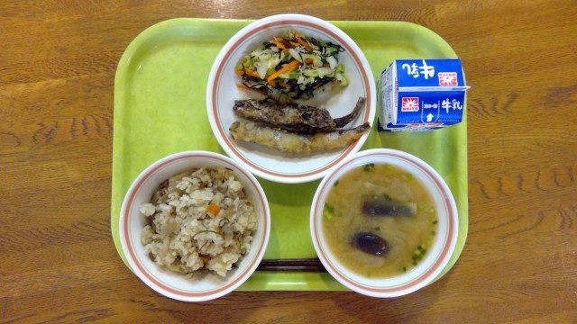 給食だより 7月4日(金) 公開日 2025/07/04 更新日 2025/07/04 今日の給食 今日の献立・豚肉とごぼうのごはん・牛乳・ししゃものごま揚げ(白ごま・黒ゴマ)・小松菜の磯和え・なすのみそ汁★今日は、「なすの特徴」について、食育メモでクラスにお知らせをしました。