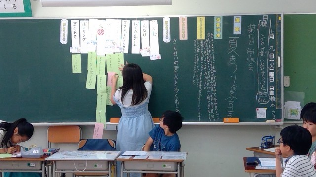 「夏祭りをしよう」という議題で、司会グループが上手に進行しながら