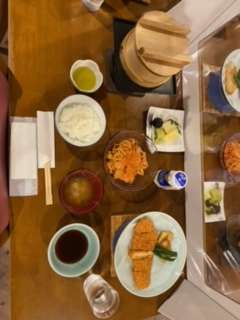 1日目 夕食 公開日 2021/10/19 更新日 2021/10/19 校長室より カジキマグロのステーキカツ、ポテトフライ、インゲン塩ゆで、蒸し野菜の盛り合わせ(かぼちゃ、さつまいも、人参、ブロッコリー、ドレッシング)、スパゲティーナポリタン、ご飯(あきたこまち)、味噌汁(豆腐、ハネギ)、ヤクルトジョア、フルーツ三点盛り(パイナップル、キウイフルーツ、巨峰)
