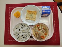 チキンライス ポテトのチーズ焼き ジュリエンヌスープ