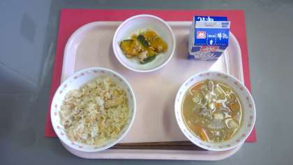 【冬至献立】 こぎつねごはん かぼちゃのそぼろあんかけ 豚汁