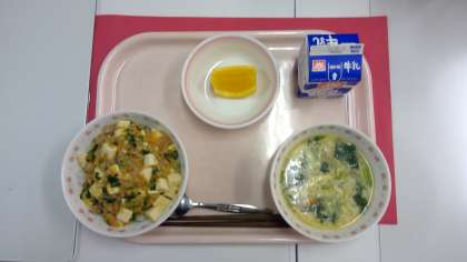 麻婆豆腐丼 中華たまごスープ くだもの(オレンジ)