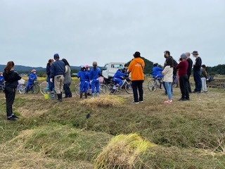 釈迦内小学校の皆さんが、自転車で帰ります。