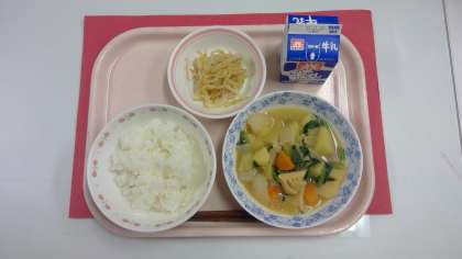 11/15(火) 公開日 2022/11/15 更新日 2022/11/15 給食関係 ごはん 鶏肉とじゃがいもの煮物 もやしの酢醬油かけ 今日の白米は秋休みに5年生17名が秋田県大館市に稲刈り体験に行ったときに刈り取った新米です。普段の給食のお米も秋田県から直送されているものですが、味の違いはどうでしょうか?お家で話題にしてみてください。