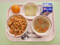 元気モリモリ丼 もずくスープ くだもの(梨)