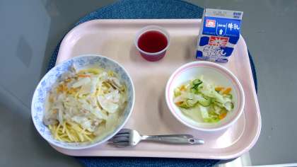 スパゲティクリームソースかけ フレンチサラダ ぶどうゼリー