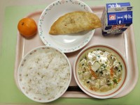 メキシカンライス洋風たまご焼きABCスープくだもの(みかん)