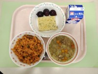 チキンライス洋風玉子焼きABCスープくだもの(巨峰)