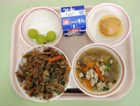 【9月誕生日給食】プルコギ丼春雨スープくだもの(シャインマスカット)