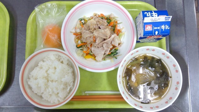 今日は給食室で即席のポン酢を作りました。酒とみりんを煮切りしてしょうゆと出汁を合わせ、レモン汁とカボス果汁を合わせたあとに昆布を漬け込んでうまみを引き出しました。果実の酸味だけで作ったので酸味に丸みがあり子供たちもよく食べていました。