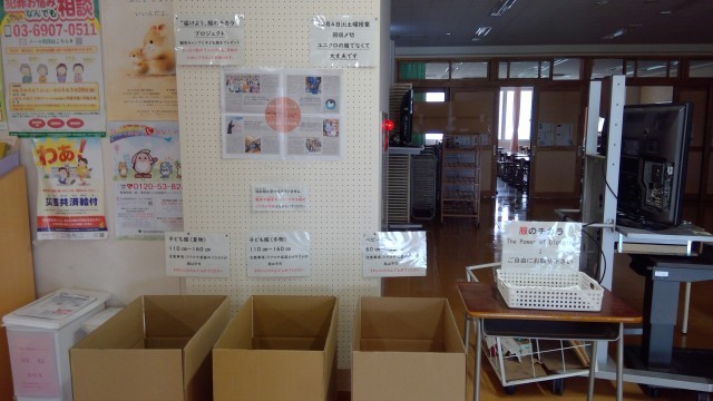 回収段ボールを下記のように3種類に分けて、1階の昇降口入った正面に設置しました。10月4日㈯の公開授業まで回収を行う予定です。