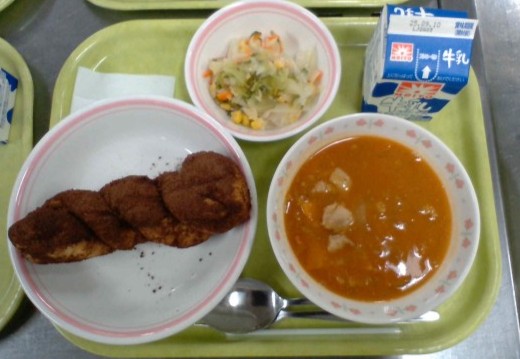 今日はココア味の揚げパンを作りました。クラスをまわっているときに「きなこ」と「ココア」どっちの揚げパンが好き?と聞くとクラスによってバラバラでしたが全体的には「きなこ派」と「ココア派」が4対6ぐらいで分かれていて興味深かったです。