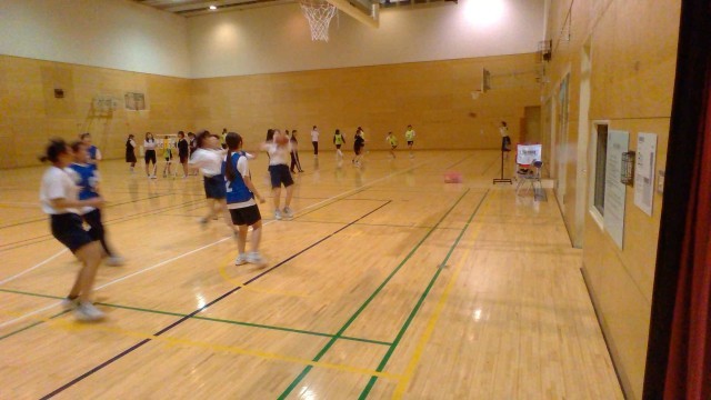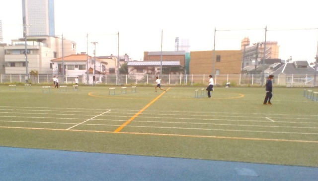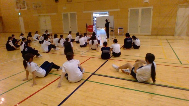 保健体育科では、9年男子ハードル、女子バスケットボールに取り組んでいます。教員からの説明を聞いている場面もあります。
