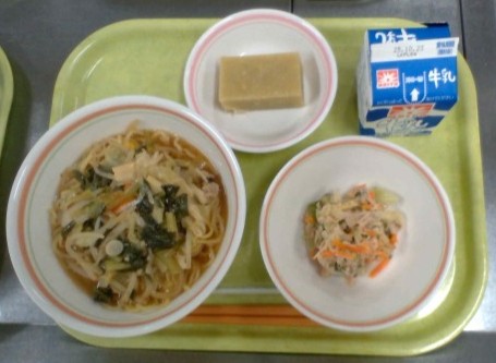 今日の味噌ラーメンは7月に実施した給食委員会の企画で選ばれたリクエストメニューです。味噌ラーメンは、給食室で昆布、鰹節、煮干し、鶏がら、豚骨の5種類で贅沢にだしをとっています。子供たちも喜んで食べていました!