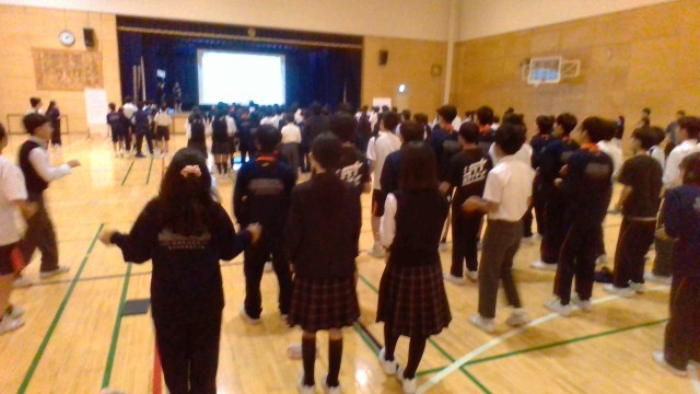 本日、選手は当日の説明を受け、応援の生徒は、応援団がリードして応援練習を行いました。本番に向けて、各々熱が入ってきました。