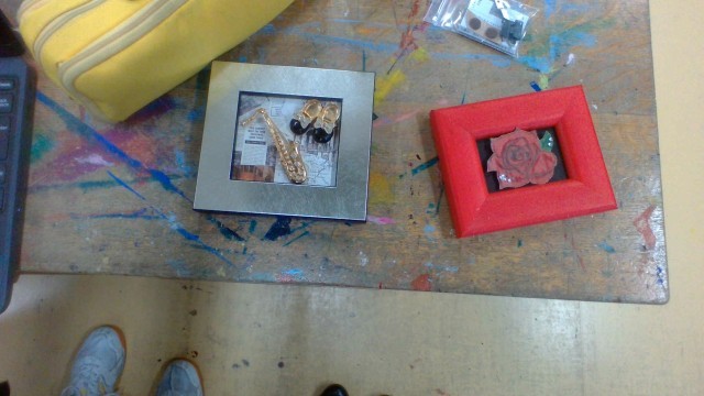 生徒達は、アトモスフィアからご提供いただいた額縁にあったアートを、