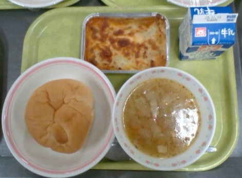 今日はイギリスをイメージした給食を作りました。シェパーズパイは、イギリスの家庭料理でミートソースの上にマッシュポテトをかけて焼く料理です。スコッチブロスはイギリスの中のスコットランドの伝統的なスープで、野菜や肉を煮て押し麦を加えるのが特徴のスープです。