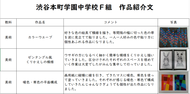 令和7年度渋谷区立小・中学校合同展覧会 渋谷本町学園中学校F組 作品紹介文