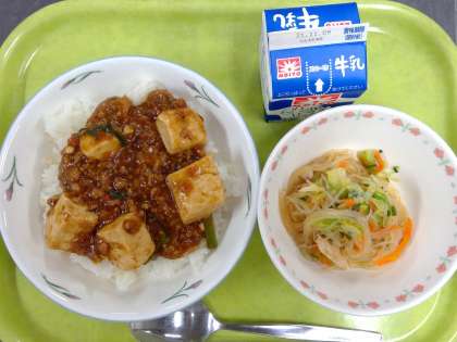 マーボー丼は、赤みそと八丁みそをブレンドして作りました。