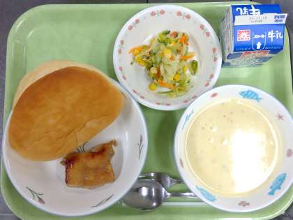 柏パンは、柏餅のように二つ折りにして焼き上げたパンです。簡単に真ん中を開くことができ、セルフでいろいろ挟んで食べることができます。鶏肉やサラダを挟むのも良し!別々に味わうも良し!コーンポタージュに浸して食べるも良し!いろいろな食べ方で美味しく味わうことができました。