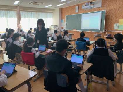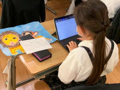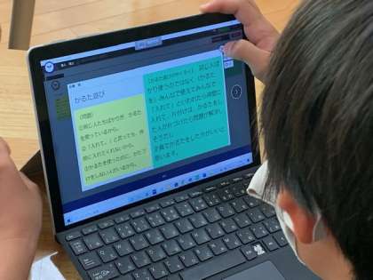 日常から、子供たちはタブレットをよく使っているので、ノートの代わりにタブレットを使う様子が見られます。指導主事の先生からも、工夫して使っていると褒めていただきました。