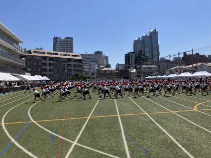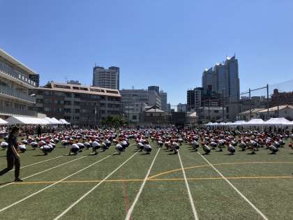 今日は大変暑いので、保護者の皆様も水分補給をしながら観戦をお願いいたします。