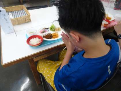 宿舎での最初の食事、みんな味わって食べていました!