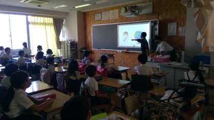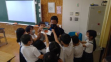 渋谷本町学園での体験の様子を見ていると、3日目の今日は、先生として、3年生の児童との関係がかなり深まったように感じました。休み時間には「うさぎ描いて」「腕相撲して」とねだる児童に囲まれ、楽しそうに過ごし、授業では黒板を使って勉強を教えたりしていました。1日の終わりには、8年生から3年生に伝えたいことをPowerPointでプレゼンしました。自身の経験をもとに発した「小学校の学習は大切。人生が楽しくなるから。」というメッセージからは、児童への思いを感じました。その後は児童から、「いっぱい遊んでくれてありがとう」というメッセージや、折り紙やお手紙のプレゼントがあり、終わりを惜しむ3年生の様子を見て、体験の充実を感じました。渋谷本町学園の良いところは、これが終わりではなく、これからさらに交流を深めることができることです。さようなら、ではなく、「また遊んでね」と言ってもらえて、それが実現できるのは、小中一貫校ならではのことです。これからの交流が楽しみです。