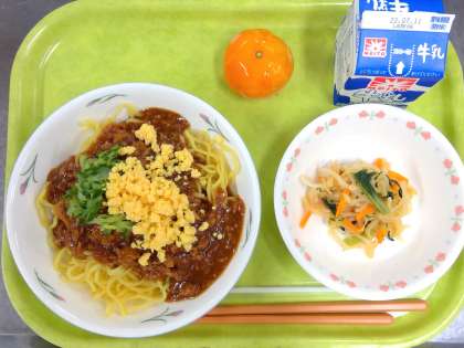 肉みそたっぷりのジャージャー麺。麺と同じくらい肉みそがのって、とっても豪勢でした!中・高等部では、「もっと麺が欲しかったよー」とのことだったので、次回は麺増量で作りたいと思います。