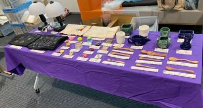 ・8年生「木のキーホルダー」は、木の良さを活かしながら、自分が飾りたいと思うキーホルダーを造りました。彫刻刀や小刀等の用具の使い方を学びました。
