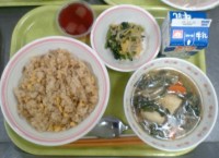 ピリ辛が癖になるキムチチャーハン。低学年でも美味しく食べられるよう、入り卵を混ぜて作っているので、辛さはマイルドです。