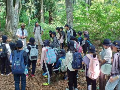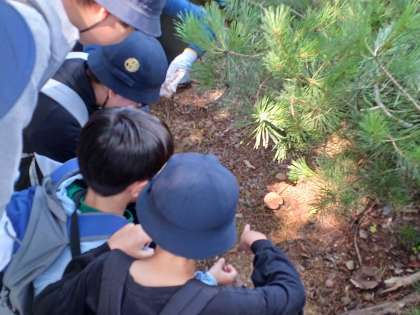 5Bのハイキングの様子です。冬季には積雪が5メートルほどになることを知りました。キノコ、ノイチゴ、クワガタ等に大興奮でした。