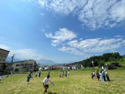 夏のスキー場で、思いっきり遊んでいます。日向は暑いですが