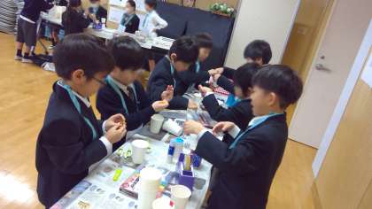 2年生が準備してくれた教材を使いおもちゃ作りをした後、一緒に遊びました。工夫した遊びの中で、楽しむ様子が見られました。