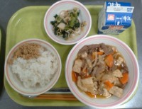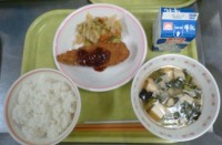 給食では、青魚が苦手な子でも食べられるように、豚ひき肉も混ぜて作りました。焼きのりで挟んだ見た目がおにぎりのようで低学年に好評でした!