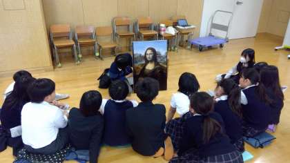 前半は大学生の作品を見ながら、美術品に対して様々な視点から鑑賞をしました。「○○に見える!」「△△にも見える!」「この部分はこういう意味なのかな?」といった声が、どのグループからも聞こえてきました。