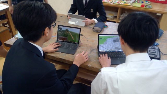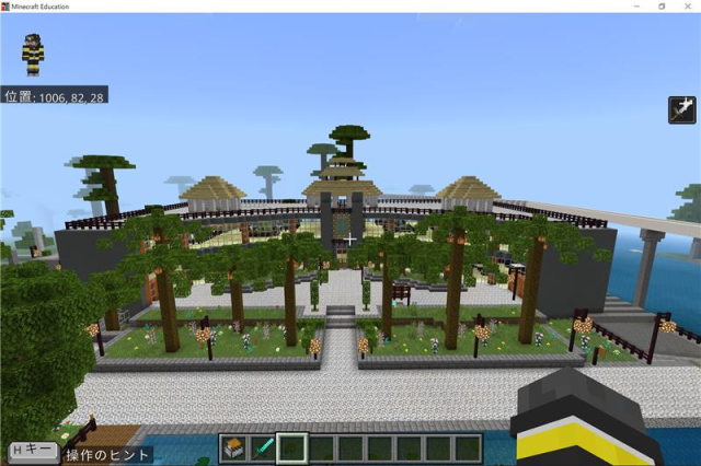 8・9年美術の授業で、昨年度「マインクラフト」を用いて、チームや個人で創造的なワールドを作成しました。生徒たちは、テーマを設定し、ブロックを組み合わせ、コマンド等を活用して様々な建造物や風景を作り上げました。あるチームは中世の城を再現し、細部にまでこだわった壮大な世界を構築しました。他のチームは未来の都市をイメージし、斬新でユニークなデザインを取り入れた建物を次々と立ち上げました。