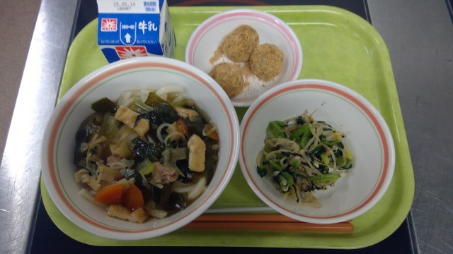 草団子は本町学園は人数が多いので乾燥のよもぎを使用しましたが、3月下旬~5月上旬が旬の植物です。今日は朝から約2500個のお団子を給食室で作りました。クラスを回っていると残ったきなこまでおかわりするクラスもあったのでほほえましかったです。