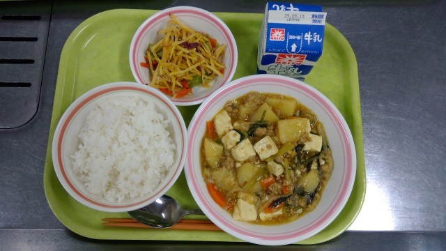 さつまいものパリパリサラダは、さつまいもを千切りにしてさっと揚げてサラダに混ぜました。さつまいもの甘味とドレッシングの酸味が合わさっておいしくできましたが、よく食べるクラスのほうが多かったですが、残ってしまうクラスもいくつかありました。