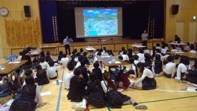 社会の「水はどこから」の学習として、水道キャラバンの方々がゲストティーチャーとしてお話してくれました。